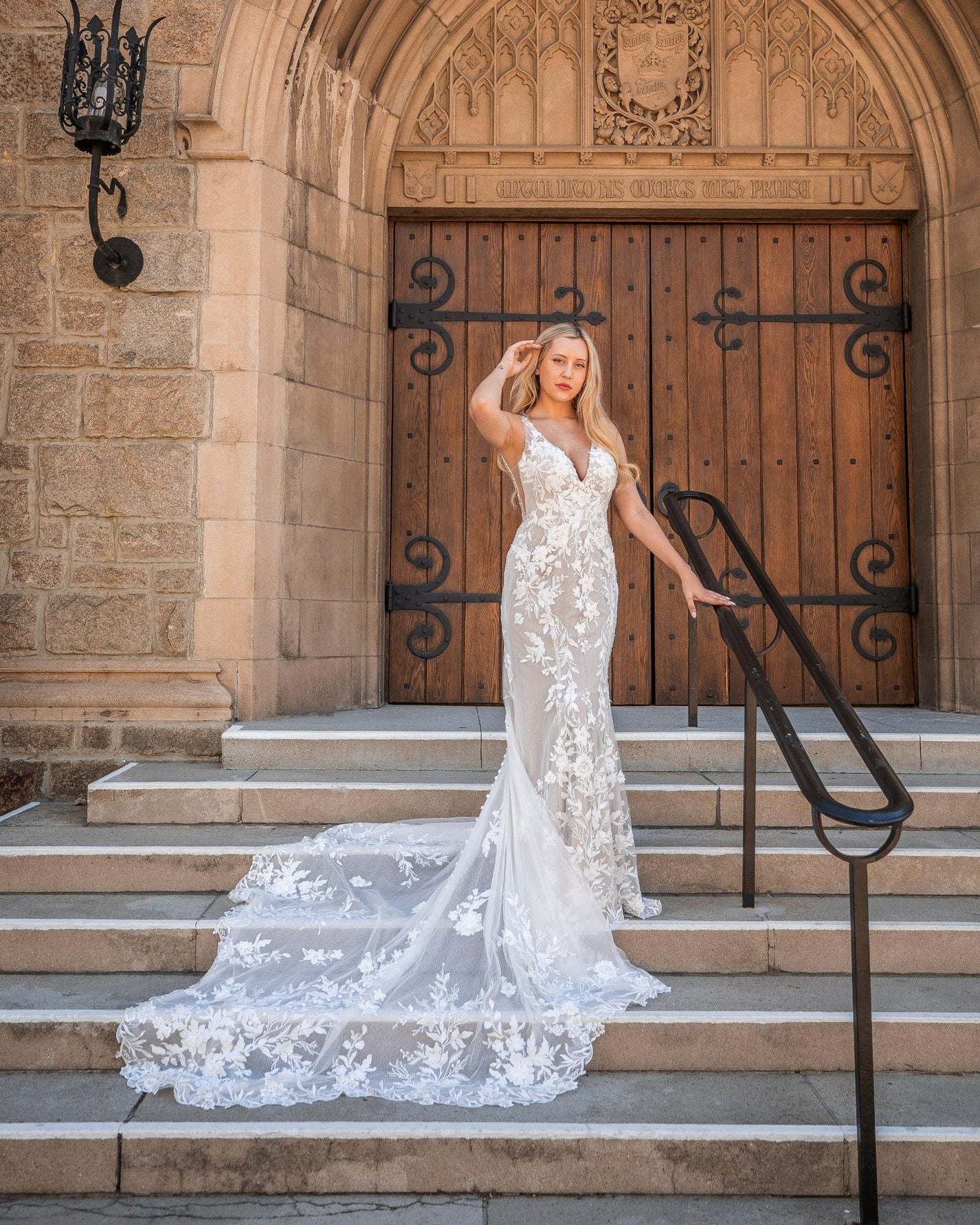 Gone are the days of the mermaid fit & flare gown. The 2024 bridal gown trends are all about sleek and sophisticated column sheath silhouettes that softly drop. These figure-hugging gowns are perfect for the modern bride who wants to show off her curves in style. Whether you opt for a simple satin sheath or a lace-covered stunner, this trend is all about effortless elegance. So say goodbye to the mermaid and hello to the sleek and chic column sheath silhouette!