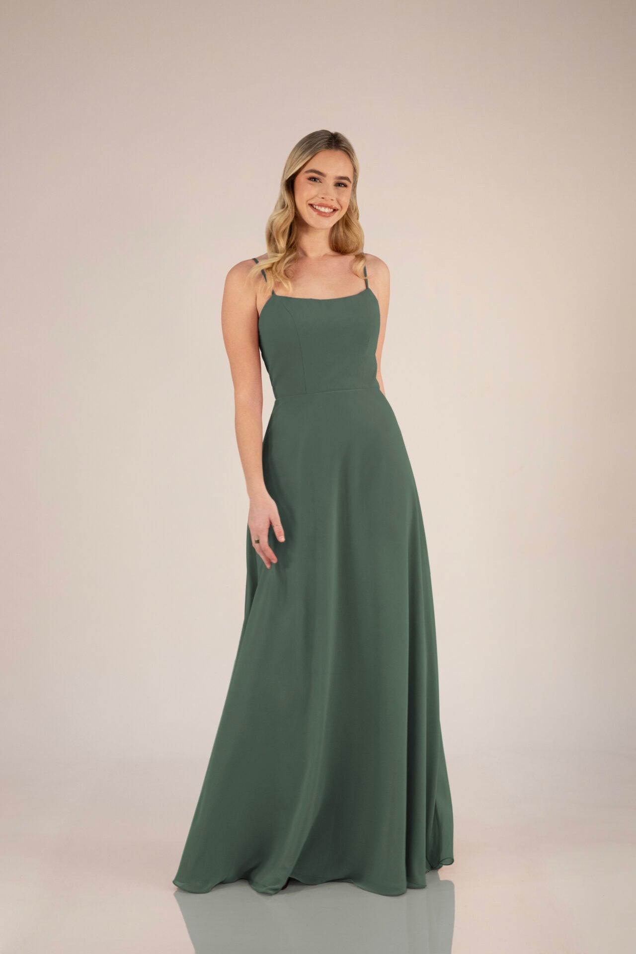 FULL-LENGTH CHIFFON A-LINE BRIDESMAID DRESS WITH SPAGHETTI STRAPS