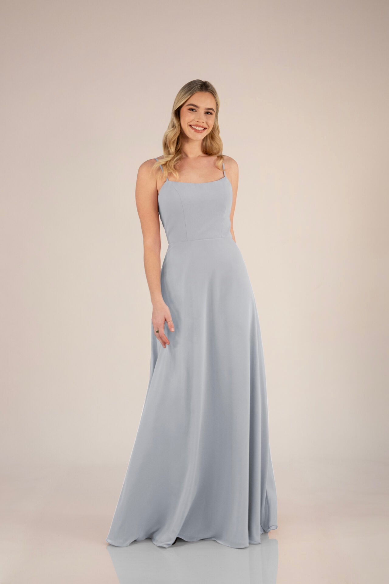 For a timeless bridal party look that will have your bridesmaids floating gracefully down the aisle, Style 9812 adds a sleek and modern touch to that special day. This full-length bridesmaid dress features a soft A-line silhouette in luxurious chiffon fabric. Delicate spaghetti straps glide along the shoulders, meeting a flattering scooped neckline. In the back, a unique corset laced back detail adds a contemporary twist. With a softly flowing A-line skirt, the ageless silhouette flatters all body types for a classic wedding day look.
