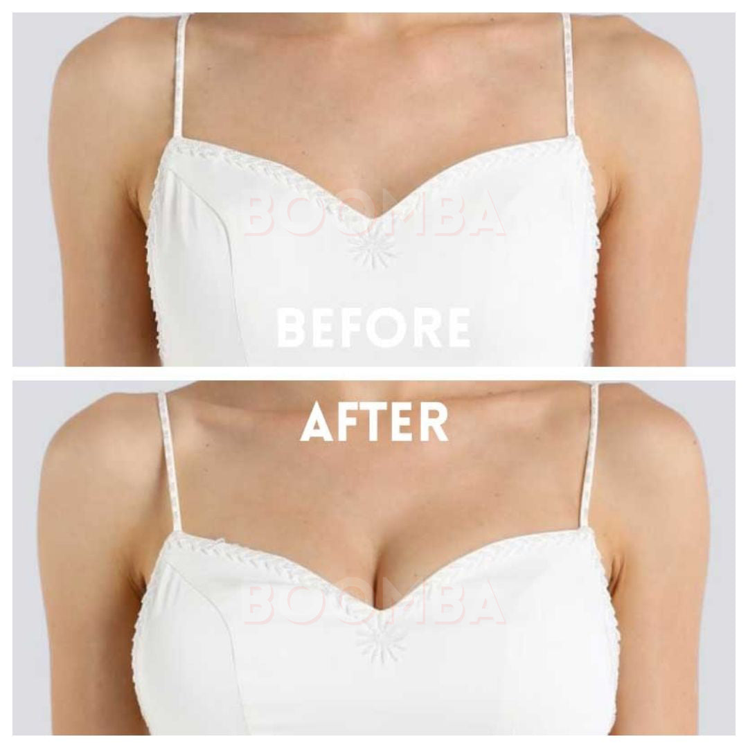 Scoop breasts up and towards the centre to create cleavage.