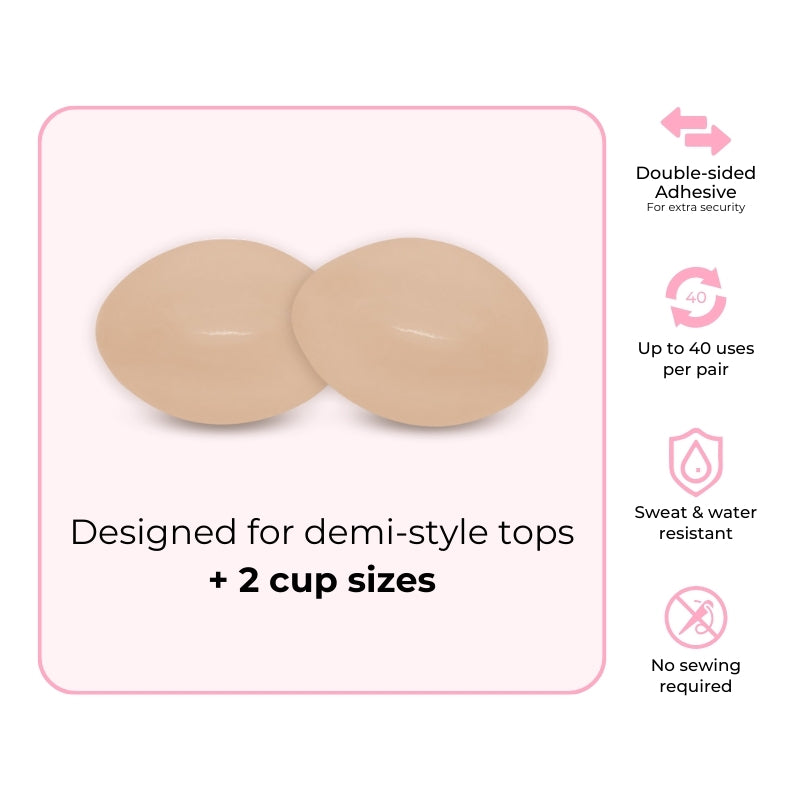 While scooping, press the insert onto the breasts and press firmly to secure.
