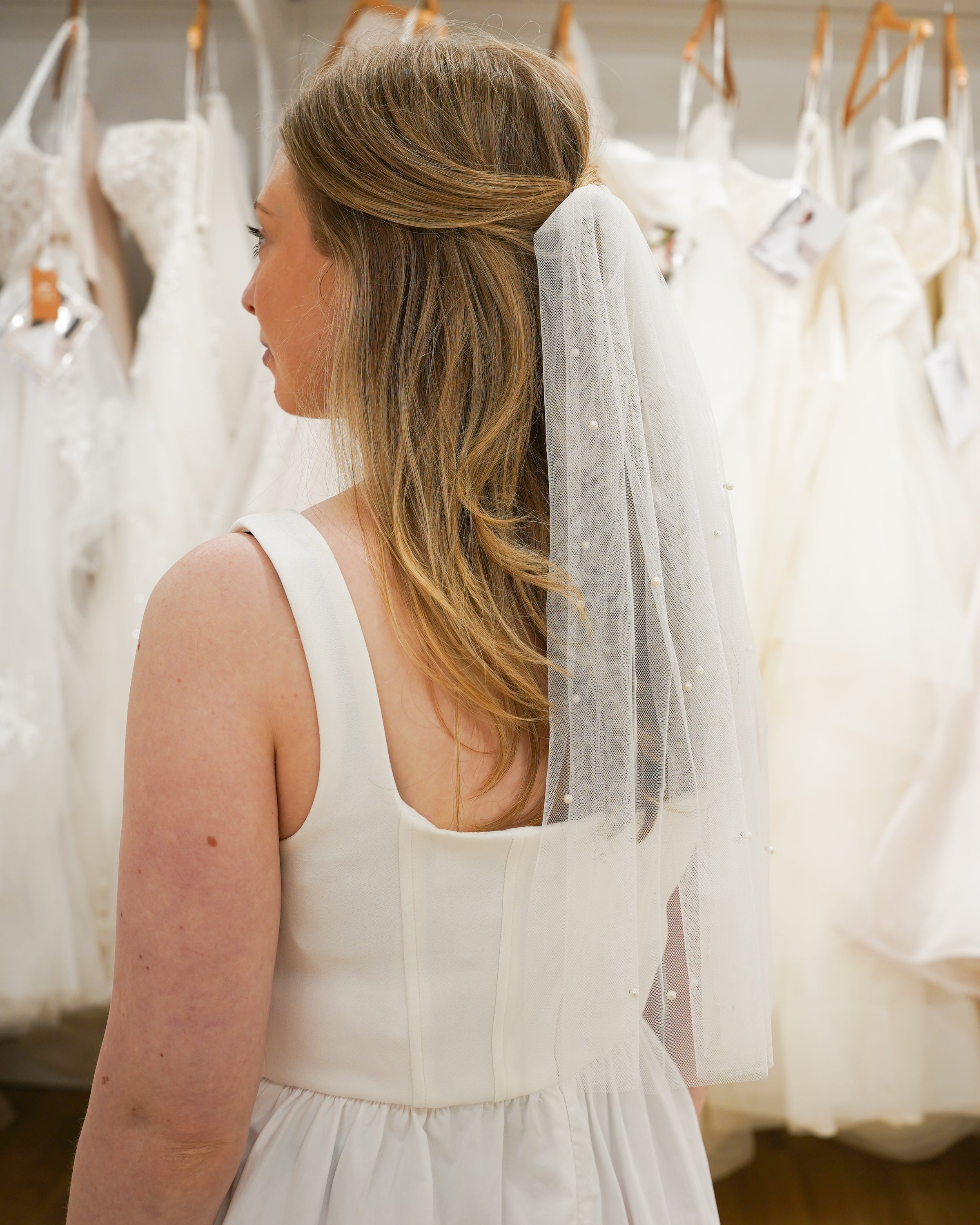 White Tulle And Pearl Party Veil