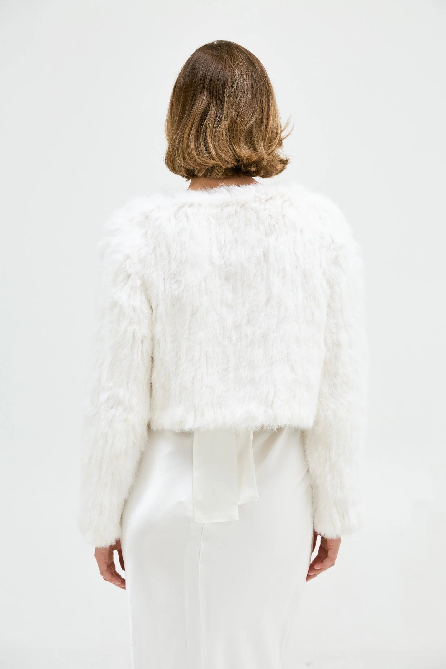 The Lola Jacket is the perfectly cropped evening jacket. Made from premium fur, this special super cosy piece has been hand knit to create a warm but light weight jacket. This piece is the perfect option for a special occasion, wedding or even dressy/casual look with your favourite jeans.