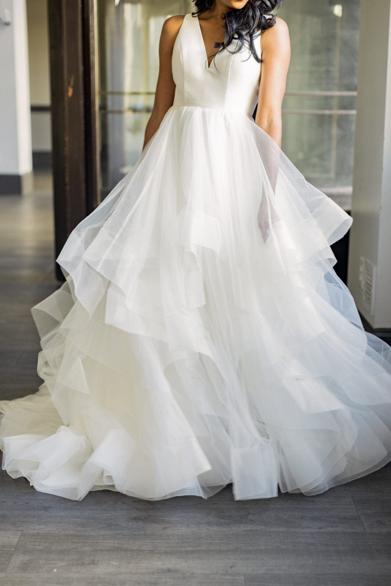MODERN TULLE BALLGOWN PRINCESS WEDDING DRESS WITH V-NECKLINE