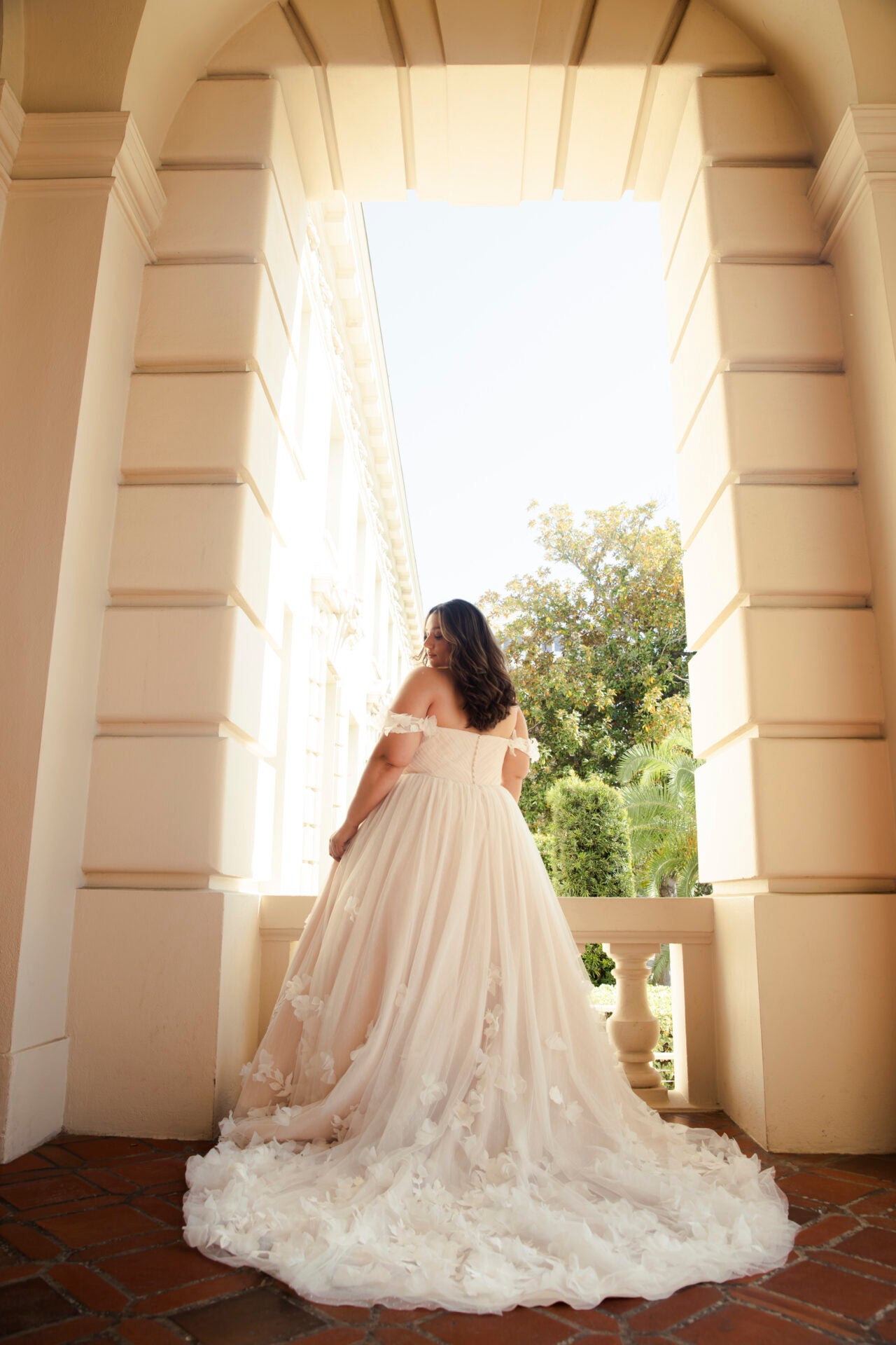 WHIMSICAL TULLE BALLGOWN WEDDING DRESS WITH 3D FLORALS AND OFF-THE-SHOULDER STRAPS