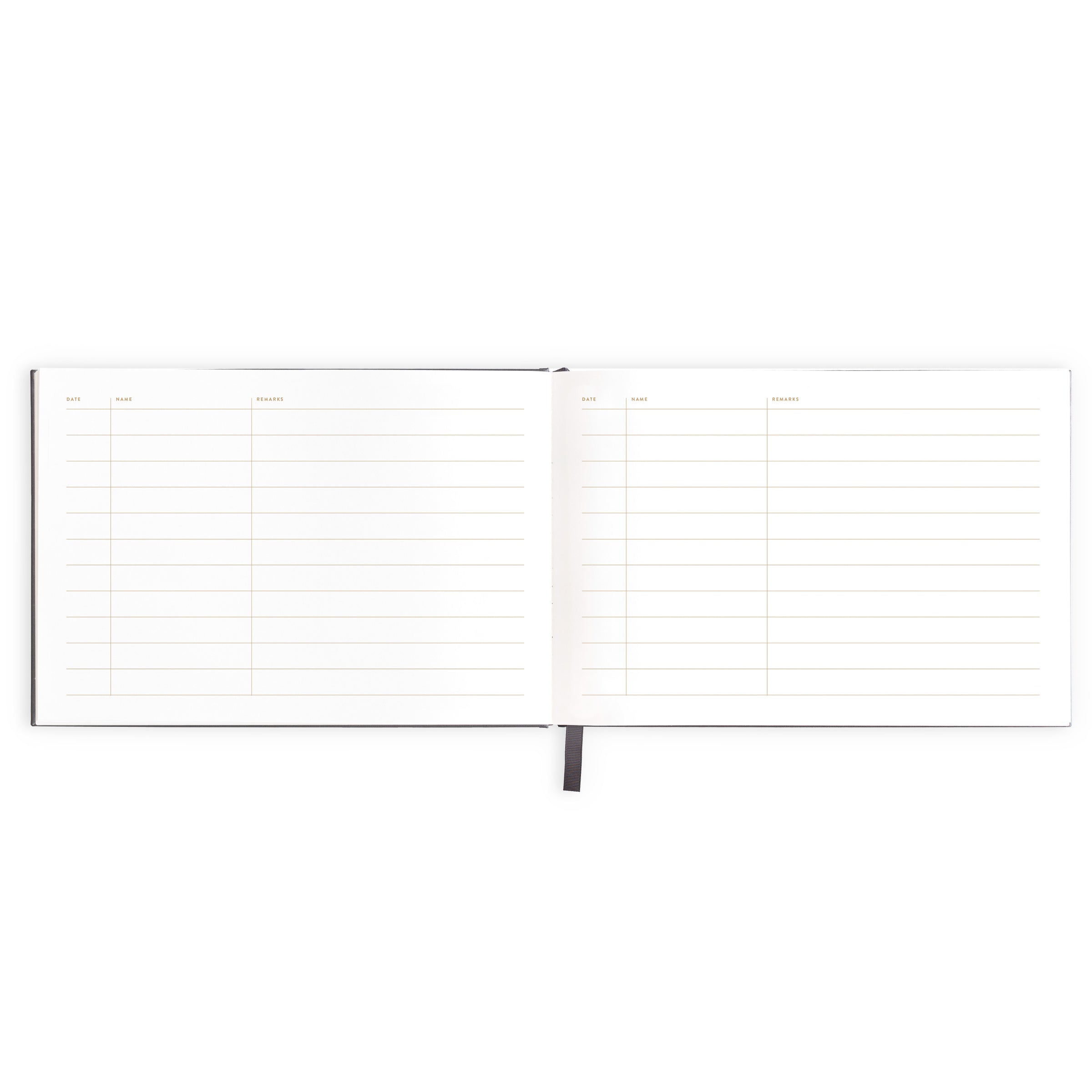 Gold foil stamped charcoal waterproof linen hard cover, grosgrain ribbon, lay-flat binding. Patterned gold foil end pages and premium 115gsm FSC-certified acid-free paper. 160 lined pages with metallic gold ink. Packaged in a cello sleeve. Designed in Australia, printed in China.