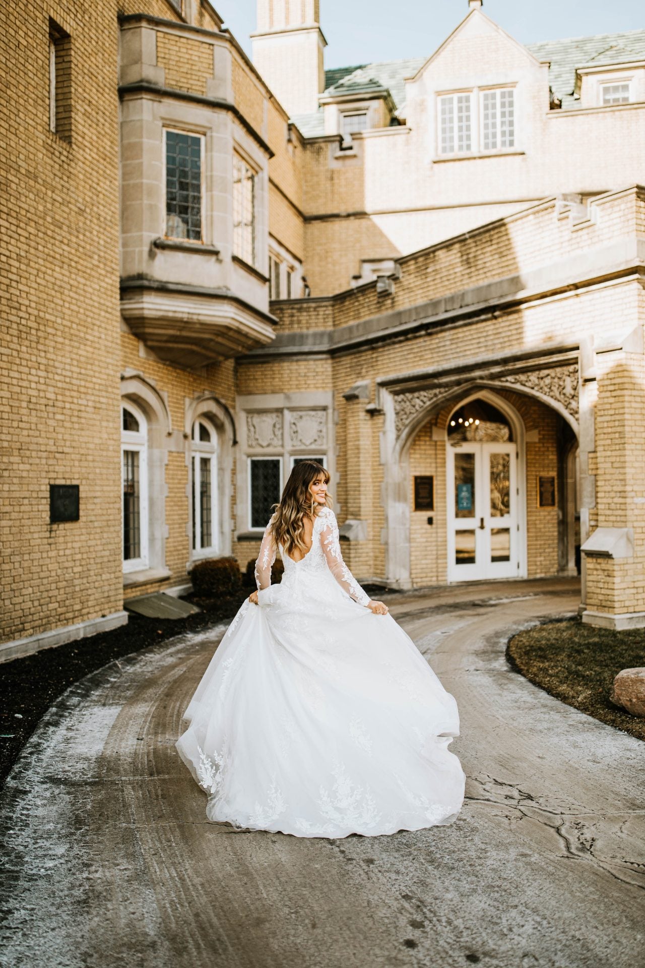 Style 7546 is a timeless wedding dress with a beautiful and flattering A-line silhouette. The lovely long sleeves have a vintage appeal with stunning lace details at the shoulders and wrists. The modern neckline complements the deep scoop back detail of the bodice to elegantly meet with layers of ethereal tulle and lace applique. At the edge of this voluminous and regal skirt lies a full train with floral lace details for a romantic, princess-worthy look. This wedding dress is also available in plus sizes.