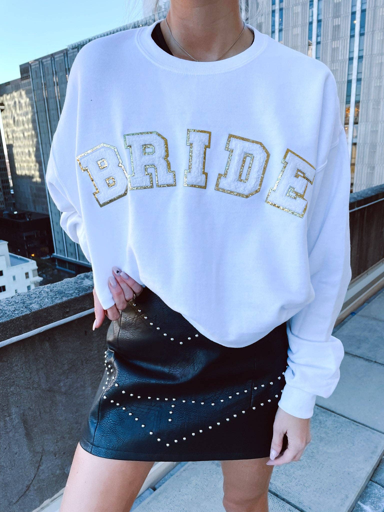 Bride Crewneck with Chenille Ivory & Gold Patches