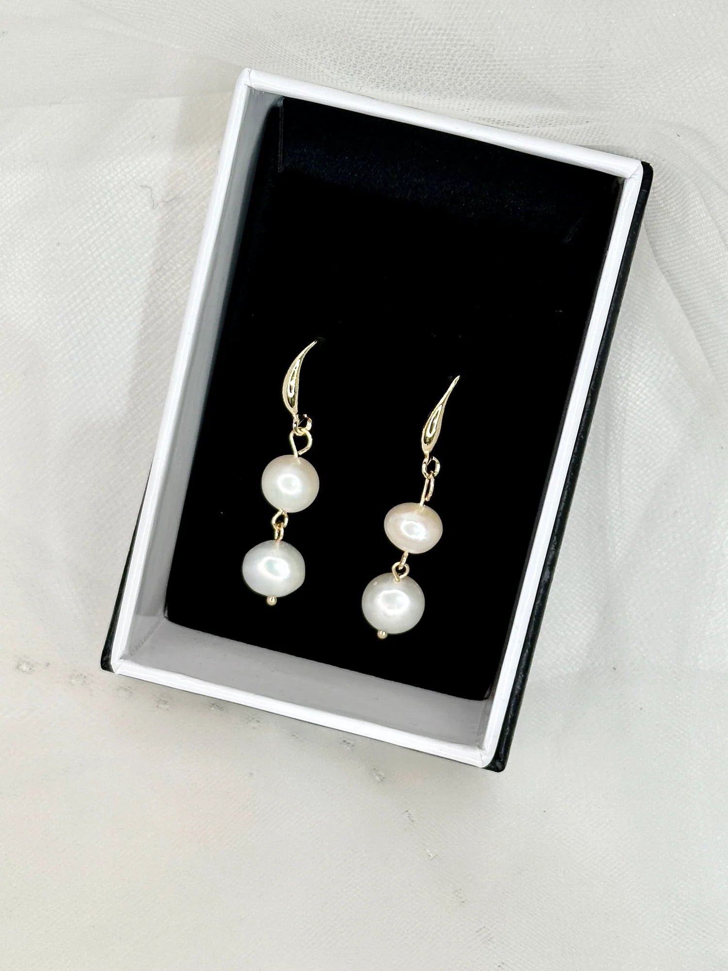 Complete your bridal ensemble with the Rome Earrings, featuring two lustrous real freshwater pearls delicately suspended from elegant gold-plated hook fittings. These earrings offer timeless sophistication and a graceful shimmer, perfectly complementing your special day. Presented in a refined display box, they make an exquisite gift or keepsake.