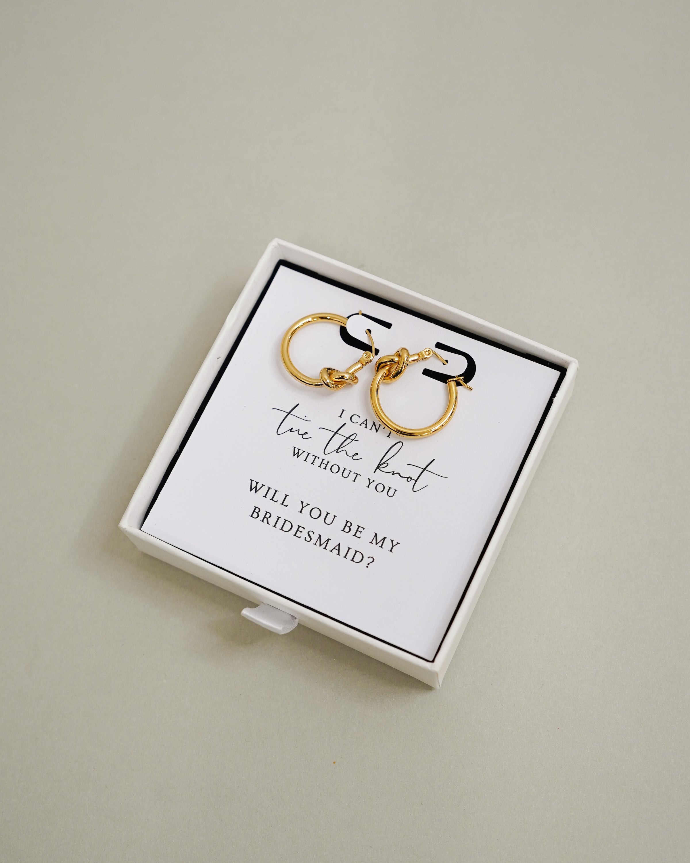 Ask to stand by your side, with our "Tie the Knot" Bridesmaid Proposal Earring Set.