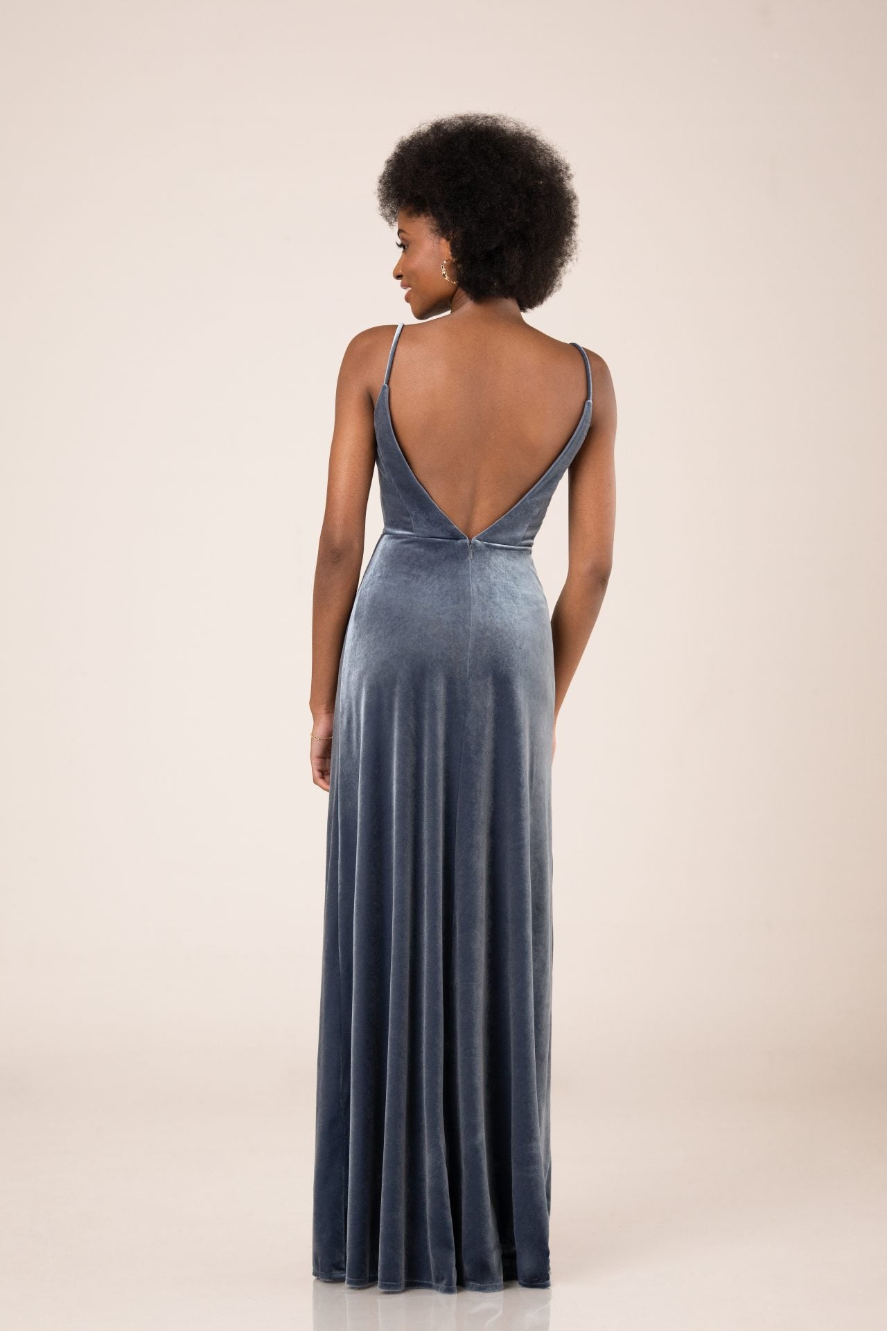 Classic bridesmaid style has never looked so chic! This luxe velvet bridesmaid gown features delicate spaghetti straps, a flattering V-neckline and a feminine A-line silhouette for the perfect fit. The plunging V-shape in the back and the lovely floor-length skirt give this gorgeous bridesmaid gown a hint of head-turning glamour with every step.