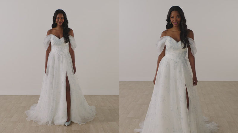 Printed Organza Off-the-Shoulder Wedding Dress with Basque Waist