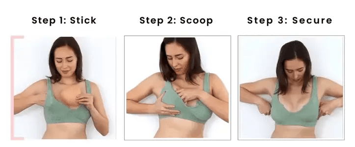 While scooping, press the insert onto the breasts and press firmly to secure.