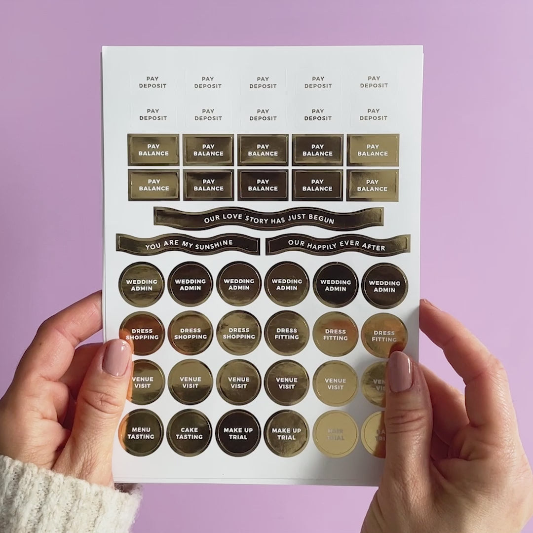 77 luxury gold foiled stickers + 48 colour stickers to inspire your wedding planning.